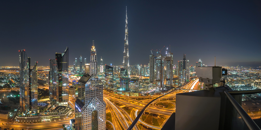 A panorama of Sheikh Zayed Road taken moments after sunset.