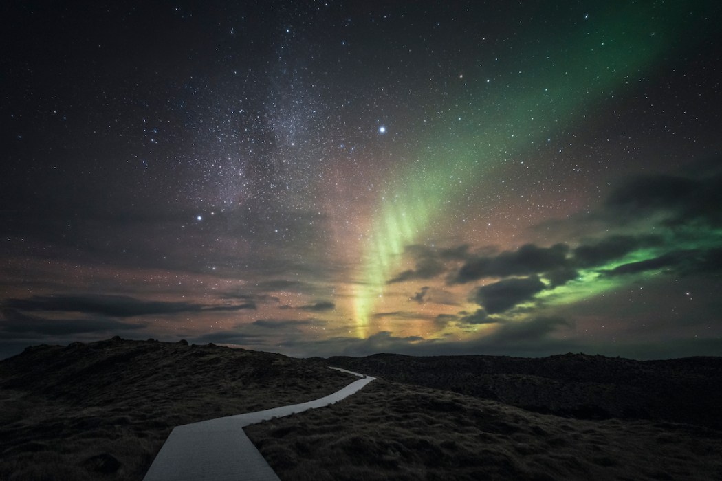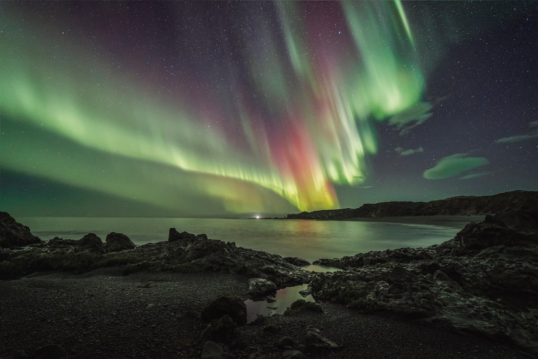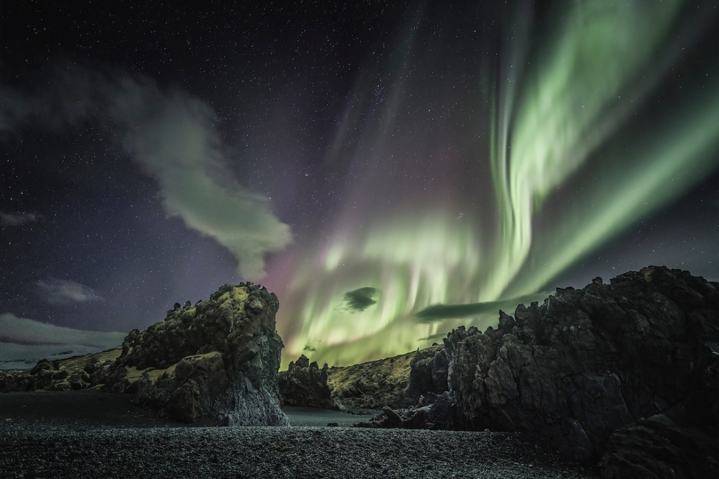 The eerie feeling of spending the winter nights watching the Northern Lights dancing in the sky over remote areas of South-West Iceland.
